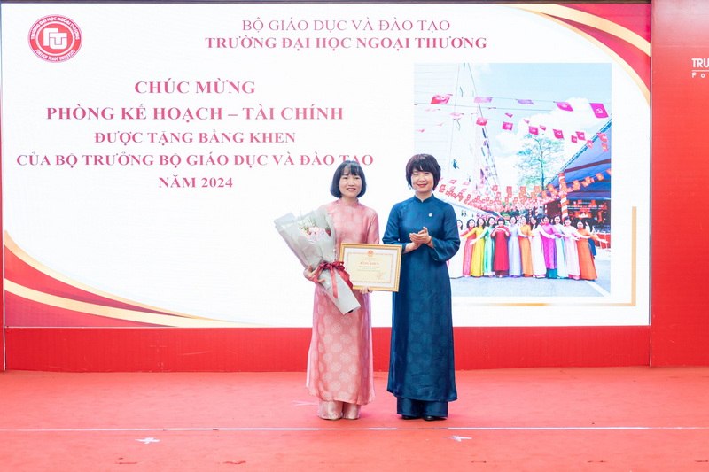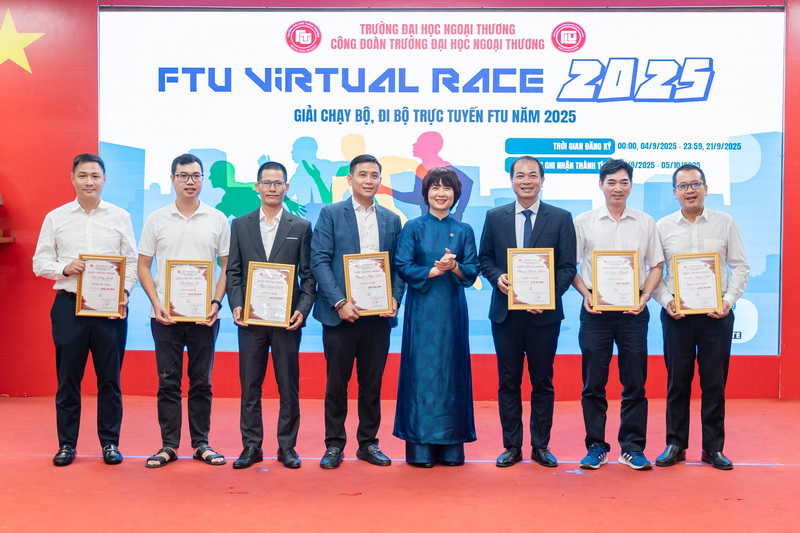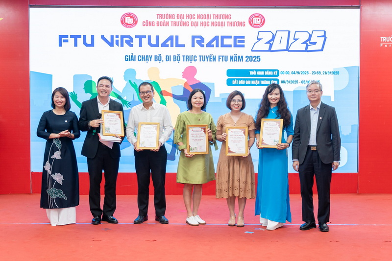 Nhân dịp Chào mừng Ngày Truyền thống trường Đại học Ngoại thương 15/10/2025, Nhà trưởng tổ chức trao tặng các danh hiệu thi đua và khen thưởng cho các tập thể và cá nhân năm 2024. Trao Giải các tập thể, cá nhân đạt thành tích xuất sắc tại “FTU Virtual Race 2025”- Giải chạy bộ, đi bộ trực tuyến FTU năm 2025. Đại diện Công đoàn Trường và Phòng TT&QHĐN tặng hoa và quà tri ân đại diện Fastech Asia (nhãn hàng Coolmate) - Nhà tài trợ quà tặng hiện vật cho “FTU Virtual Race 2025” - Giải chạy bộ, đi bộ trực tuyến FTU năm 2025. Hướng đến chào mừng 65 năm thành lập trường Đại học Ngoại Thương, Công đoàn trường ĐH Ngoại Thương phát động phong trào “Green corner-Green University” với thông điệp “Hành động nhỏ- Ý nghĩa lớn” cho ngôi trường FTU “Xanh – Hạnh phúc”.