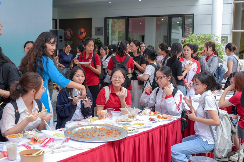 Ngay sau phần khai mạc, các cán bộ, giảng viên, sinh viên Nhà trường đã cùng nhau nâng ly chúc mừng ngày truyền thống cũng như thưởng thức các món ăn hấp dẫn được Công đoàn Trường chuẩn bị.