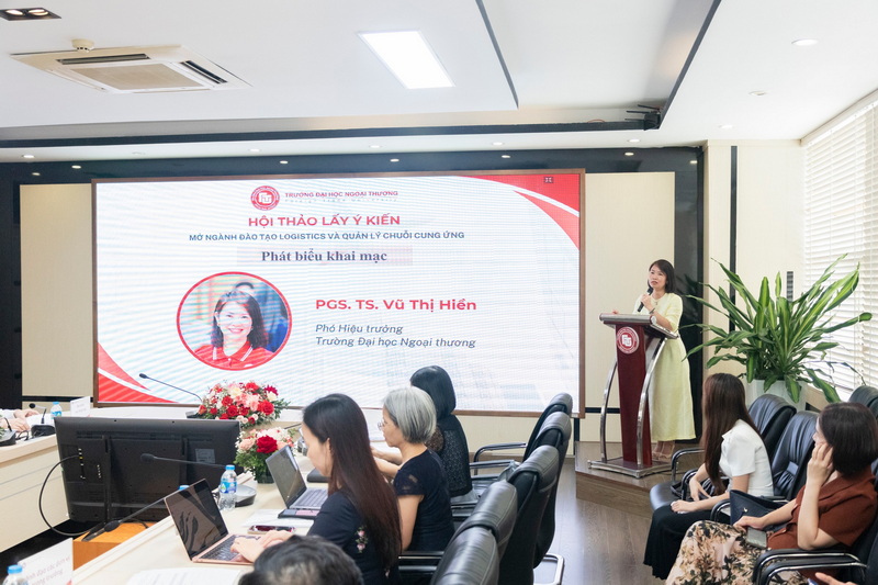 Phát biểu khai mạc, PGS, TS Vũ Thị Hiền nhấn mạnh rằng việc mở ngành Logistics và Quản lý chuỗi cung ứng là bước đi chiến lược, góp phần thực hiện mục tiêu của Nhà trường trong phát triển ngành đào tạo mới, đáp ứng yêu cầu hội nhập sâu rộng, chuyển đổi số và phát triển bền vững.