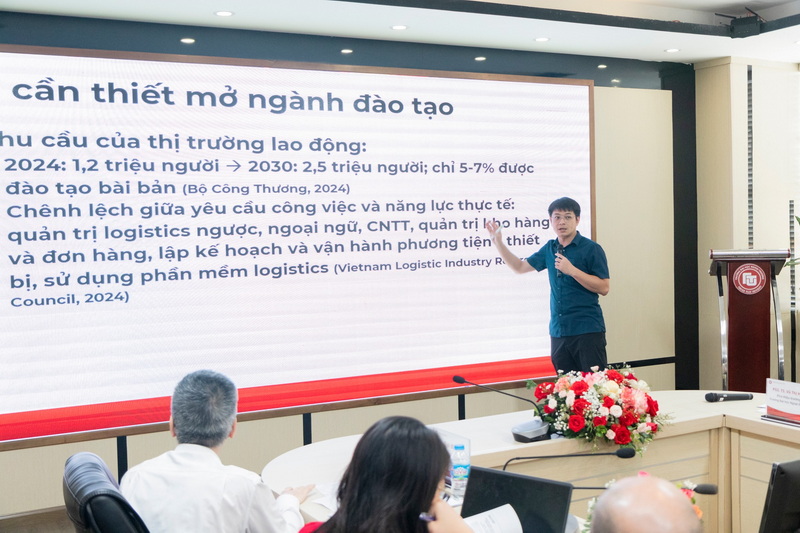 Hội thảo được chia làm hai phiên. Tại phiên đầu tiên, Hội thảo đã lắng nghe TS Nguyễn Minh Phúc đã trình bày chi tiết đề án và cấu trúc chương trình đào tạo G-LOGSI, bao gồm mục tiêu, chuẩn đầu ra, nội dung học phần, phương pháp đào tạo và cơ chế hợp tác với doanh nghiệp – hiệp hội trong và ngoài nước. Chương trình G-LOGSI được thiết kế tích hợp các học phần mới gắn với xu hướng toàn cầu như: Logistics Innovation, E-business Logistics, Sustainable Operations, AI trong chuyển đổi số, Supply Chain Analytics. Tiếp sau đó là các bài tham luận của Ông Ngô Khắc Lễ, Bà Cao Cẩm Linh, TS Nguyễn Duy Hồng, TS Lê Thị Việt Nga, Ông Lê Hồng Sơn về các nội dung chương trình đào tạo, đặc biệt là nội dung của các học phần giảng dạy, cách thức tổ chức học phần tốt nghiệp và vấn đề đi thực tập (Co-op) trong chương trình đào tạo.