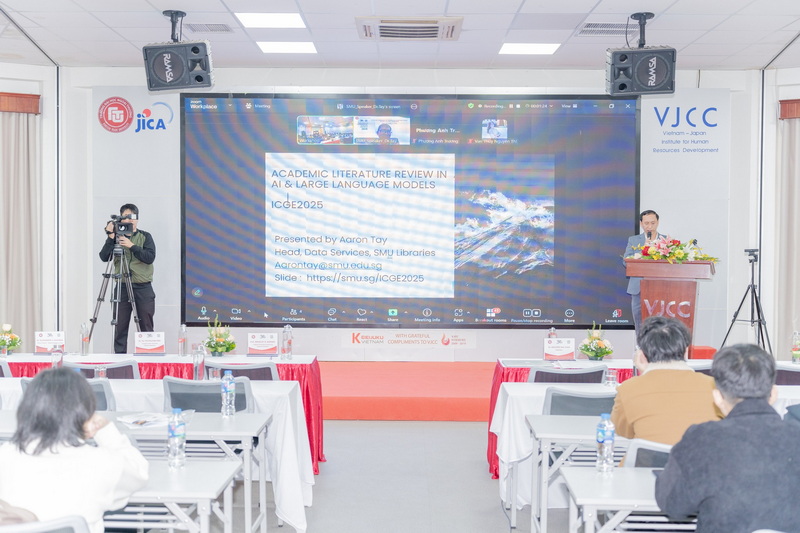 Tiếp nối phiên toàn thể của Hội thảo là 1 workshop với chủ đề: “Academic Literature Review in the Age of AI and Large Language Models (Đánh giá tài liệu học thuật trong thời đại AI và các mô hình ngôn ngữ lớn)” và 10 phiên thảo luận song song diễn ra trong sáng và chiều ngày 08/12/2025.