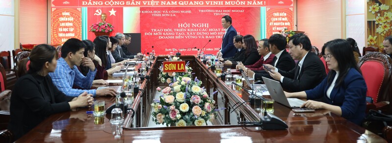 Ngày 22/12/2025, Trường Đại học Ngoại Thương đã phối hợp cùng Sở Khoa học và Công nghệ tỉnh Sơn La và các doanh nghiệp, hợp tác xã trên địa bàn tỉnh tổ chức “Hội nghị trao đổi, triển khai các hoạt động đổi mới sáng tạo, xây dựng mô hình kinh doanh bền vững và bao trùm”.