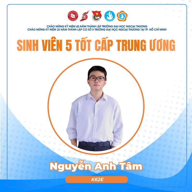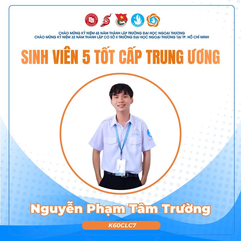 Danh hiệu “Sinh viên 5 Tốt” cấp Trung ương là danh hiệu cao quý dành cho sinh viên có thành tích xuất sắc, được xét chọn trong số các trường Đại học, Học viện và Cao đẳng trên toàn quốc. Năm nay, trường Đại học Ngoại Thương vinh dự ghi dấu ấn với 10 gương mặt tiêu biểu được vinh danh tại cả Hà Nội và TP Hồ Chí Minh. Đây là minh chứng rõ nét cho những đóng góp, thành tích nổi bật của sinh viên Ngoại Thương trong quá trình học tập và rèn luyện; đồng thời tiếp tục khẳng định các giá trị khác biệt cùng môi trường, chất lượng đào tạo, hội nhập toàn diện của trường Đại học Ngoại Thương.
