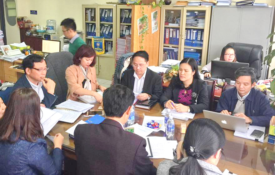 Sau khi nghe báo cáo của PGS, TS Hoàng Xuân Bình - Trưởng Khoa và một số ý kiến bổ sung của các thành viên dự họp, Đoàn công tác đã kiểm tra việc chuẩn bị của khoa ĐTTC đối với các hoạt động trong quy trình Kiểm định nhà trường, về việc phổ biến đến các cán bộ trong đơn vị về 10 tiêu chuẩn và 61 tiêu chí về đánh giá chất lượng giáo dục Đại học và kiểm tra về việc phân công nhiệm vụ giữa các thành viên trong đơn vị...