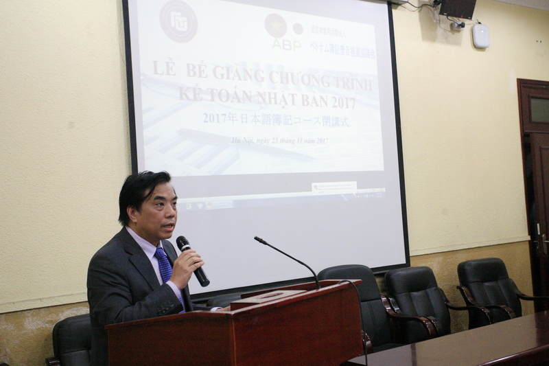 PGS.TS Bùi Anh Tuấn gửi lời cảm ơn chân thành tới Hiệp hội phổ cập và xúc tiến phương pháp kế toán ghi sổ kép tại Việt Nam, mà đại diện là ông Otake Kenichiro – Chủ tịch Hiệp hội vì đã luôn dành cho trường ĐH Ngoại thương sự quan tâm, hỗ trợ nhiệt tình trong suốt thời gian qua. PGS.TS Bùi Anh Tuấn khẳng định, môn Kế toán ghi sổ kép Nhật Bản trong 8 năm qua đã góp phần đáng kể trong việc tạo sự khác biệt cho chuyên ngành TNTM, từ đó góp phần nâng cao chất lượng đào tạo chung của trường Đại học Ngoại thương và cho biết, trong thời gian tới, với định hướng đào tạo gắn liền với nhu cầu thực tiễn của thị trường lao động, trường Đại học Ngoại thương sẽ tiếp tục duy trì và phát triển hơn nữa môn nghiệp vụ Kế toán bằng tiếng Nhật trong chương trình đào tạo của Nhà trường.