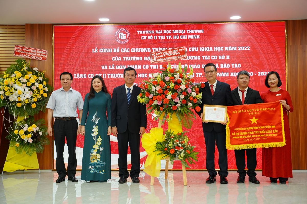 Thay mặt lãnh đạo Bộ GD&ĐT, Thứ trưởng Nguyễn Văn Phúc đã trao tặng Cơ sở II Trường ĐH Ngoại thương tại TP. HCM Cờ thi đua và Bằng khen của Bộ GD&ĐT. Đây là sự ghi nhận xừng đáng về những thành tích vượt trội và đóng góp tiêu biểu của Cơ sở II trong thời gian vừa qua. Cơ sở II sẽ tiếp tục không ngừng đổi mới toàn diện hơn nữa để nâng cao chất lượng, uy tín, từ đó đáp ứng yêu cầu ngày càng cao của xã hội và thị trường nhân lực trong nước và quốc tế.