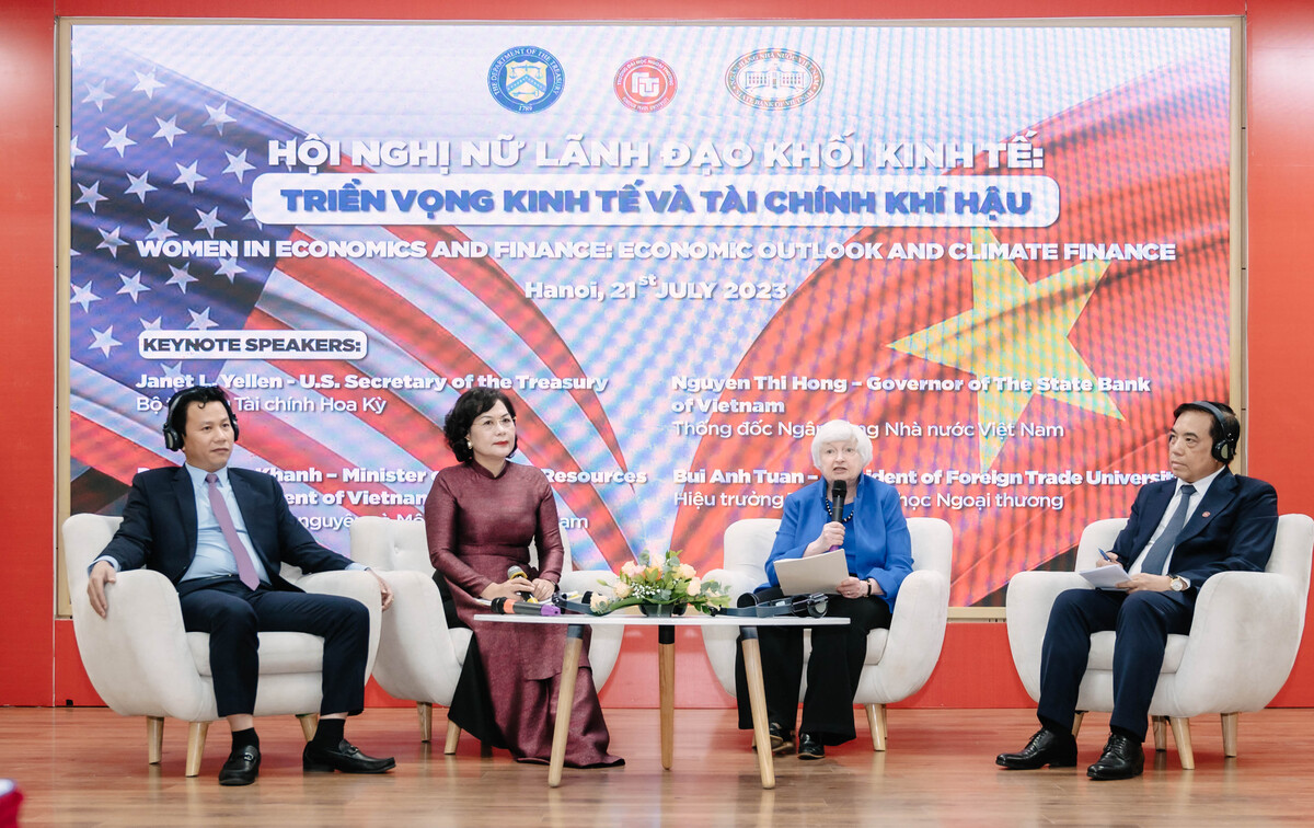 Ngày 21/7/2023, trong khuôn khổ chuyến thăm chính thức Việt Nam của Bộ trưởng Tài chính Hoa Kỳ - Bà Janet Yellen, Hội nghị Nữ lãnh đạo khối kinh tế đã diễn ra tại Trường Đại học Ngoại thương với chủ đề: “Triển vọng kinh tế và Tài chính khí hậu”.