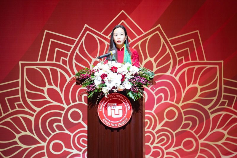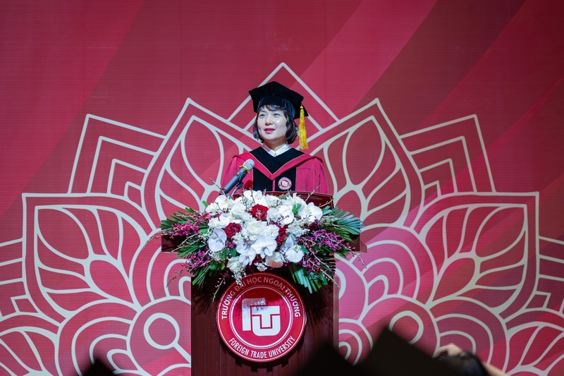 Phát biểu tại buổi lễ, PGS, TS Phạm Thu Hương - Hiệu trưởng Trường Đại học Ngoại Thương đã nhiệt liệt biểu dương những thành tích học tập, rèn luyện của tất cả sinh viên được trao bằng tốt nghiệp đợt này. Cô gửi lời nhắn tới các tân cử nhân rằng ngày tốt nghiệp không chỉ là điểm kết thúc của quãng đời sinh viên mà còn là khởi đầu cho một hành trình mới đầy cơ hội và thách thức. Mọi con đường sự nghiệp chân chính, mang lại giá trị cho cuộc sống, đều đáng trân trọng; tuy nhiên, để đạt được thành tựu, các em phải đánh đổi bằng sự nỗ lực, kiên trì và bền bỉ.
