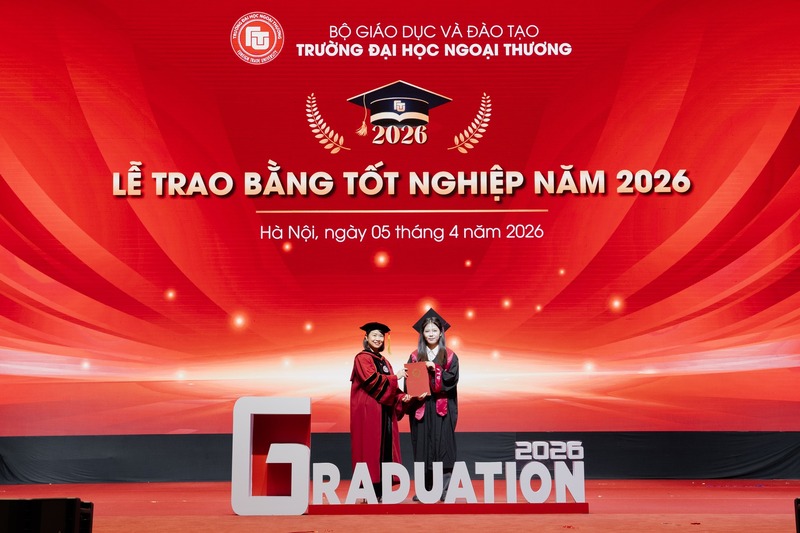 Ngày 05/4/2026, Trường Đại học Ngoại Thương trang trọng tổ chức Lễ trao bằng tốt nghiệp đợt 1 năm 2026 cho 1.265 sinh viên đại học hình thức đào tạo chính quy khóa 61 và các khóa bổ sung tại Trụ sở chính Hà Nội và Cơ sở Quảng Ninh.