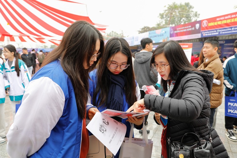 Gian tư vấn của Nhà trường đã thu hút sự quan tâm của đông đảo học sinh và phụ huynh. Tại gian tư vấn, các thầy cô đã nhiệt tình giới thiệu những thông tin quan trọng về các phương thức xét tuyển, các chương trình đào tạo năm 2026 tại Trường Đại học Ngoại Thương. Đồng thời, các em học sinh cũng được lắng nghe trực tiếp những chia sẻ hữu ích về môi trường học tập, điều kiện xét tuyển và các chương trình hỗ trợ sinh viên.